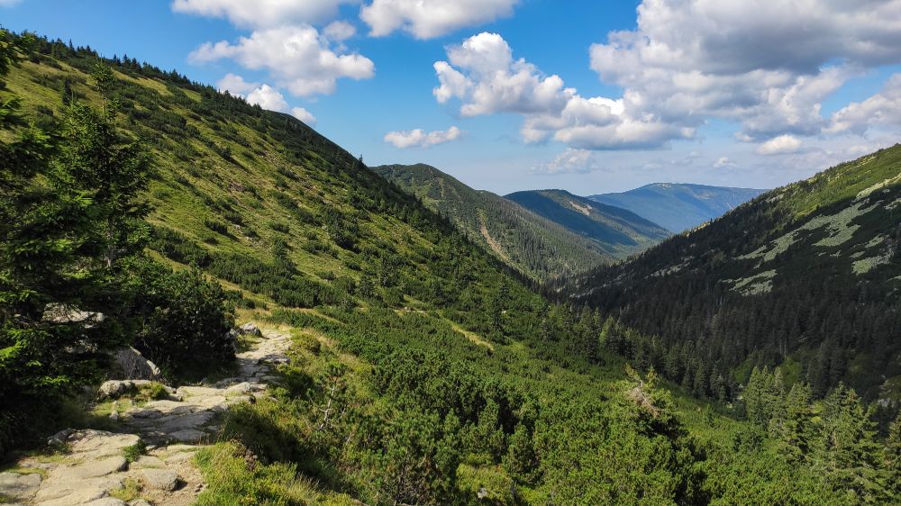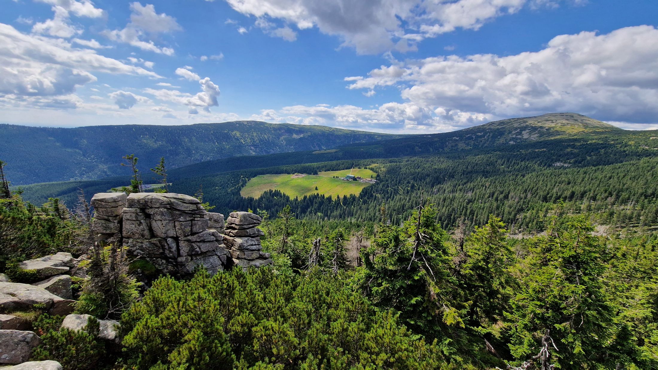 Samotná Erlebachova bouda se nachází na žluté turistické značce, asi 750 metrů od hlavního hřebenu Krkonoš, takže pokud máte náladu na úplně pidi-vycházku za výhledy nebo za borůvkovým koláčem na Špindlerově boudě, doporučujeme zajít aspoň tam. Případně si mini-vycházku můžete protáhnout na jakoukoli stranu hřebenové Cesty česko-polského přátelství, která po červené značce mapuje hranice s Polskem.